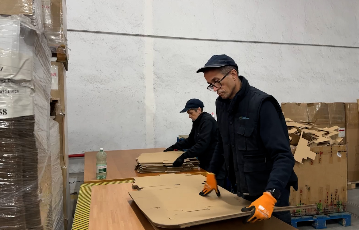 Ignacio Molina es un trabajador ya veterano en el Centro de Empleo de Aldeas Inclusiva, donde lleva 23 años. Trabaja para Ecoembalajes, una empresa que se dedica a hacer cajas para panaderías o perfumerías. Este empleo le ha permitido «aprender bastante» y, sobre todo, «tener independencia», comenta. Ignacio se siente «muy arropado» en su puesto de trabajo, donde comparte labores con “gente que también tiene discapacidad y circunstancias similares”, lo que le permite sentirse a gusto.
