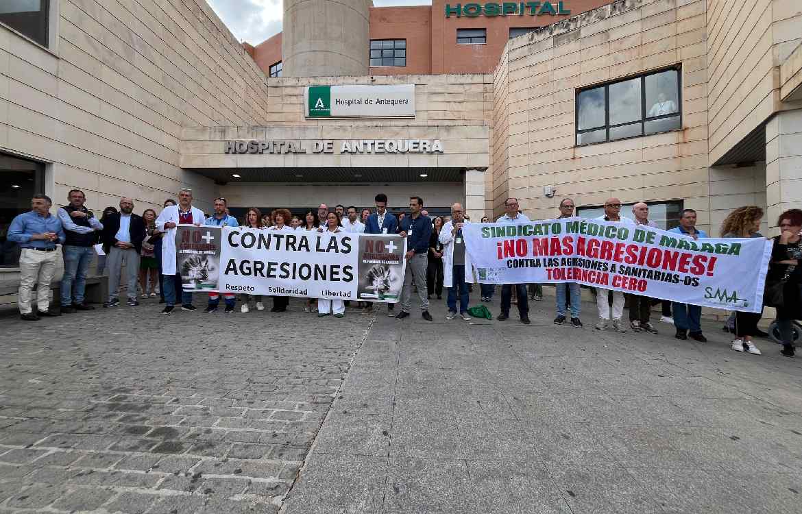 Como muestra de apoyo, compañeros del centro hospitalario se han concentrado este lunes en la entrada principal del Hospital de Antequera para expresar su respaldo a la profesional agredida y condenar cualquier tipo de violencia contra el personal sanitario.