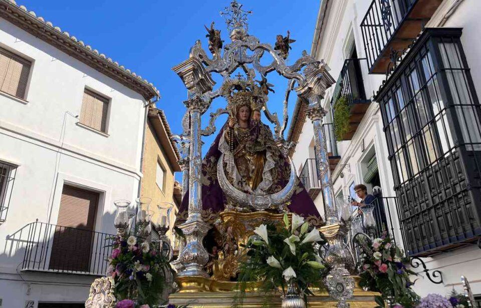 Antequera vivió este domingo 5 de octubre una de sus citas marianas más significativas con la procesión de su Copatrona, Nuestra Señora del Rosario. Desde la iglesia de Santo Domingo partía, a las once y media de la mañana, el cortejo procesional tras la celebración de la primera misa del triduo en honor a la Virgen, dando así inicio a una jornada de gran devoción y recogimiento en el casco histórico de la ciudad.