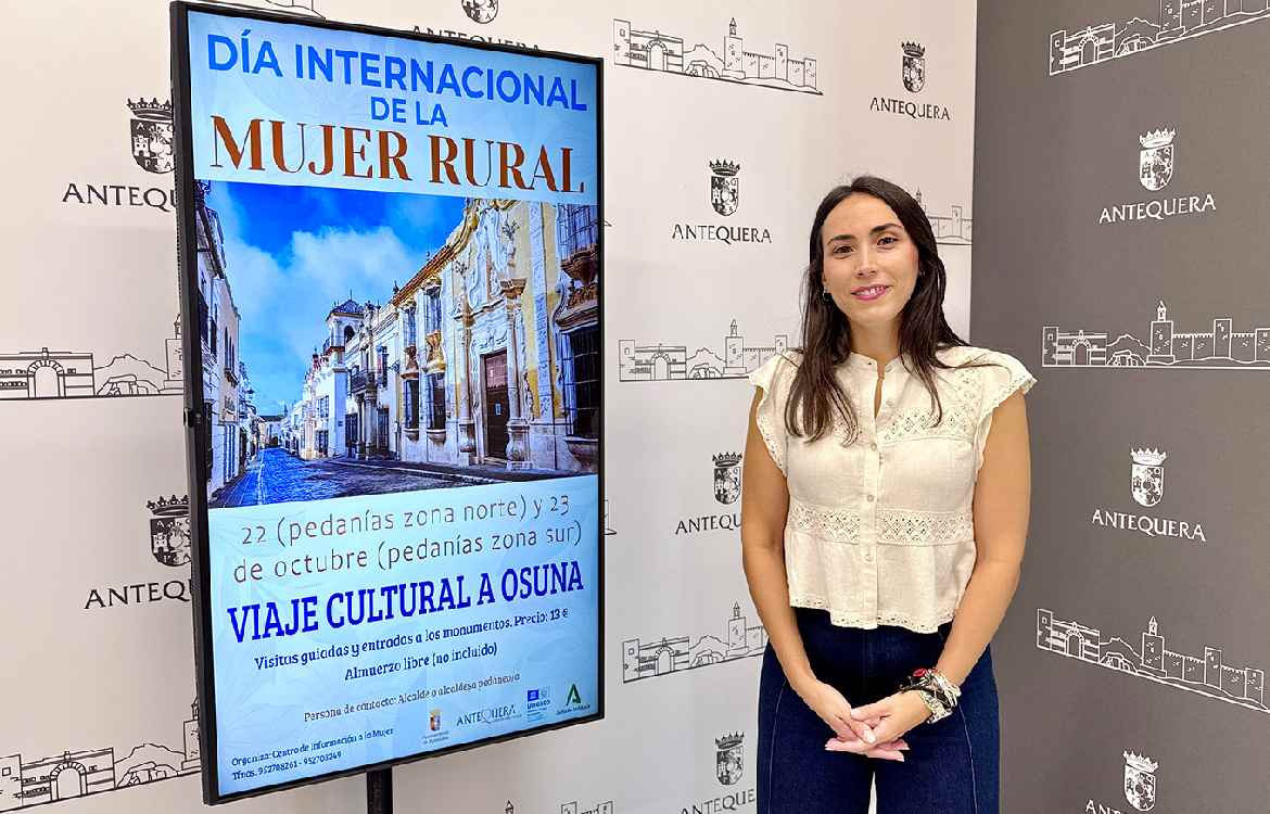 La iniciativa consistirá en una excursión cultural a Osuna, organizada para las mujeres de las distintas pedanías antequeranas, que se desarrollará en dos jornadas: el martes 22 de octubre con las pedanías de la zona norte (Los Llanos, Cartaojal, Bobadilla, Bobadilla Estación, Colonia de Santa Ana y Cañadas de Pareja), y el miércoles 23 de octubre con las de la zona sur (La Higuera, Los Nogales, Las Lagunillas, La Joya, Puerto del Barco y Villanueva de Cauche).