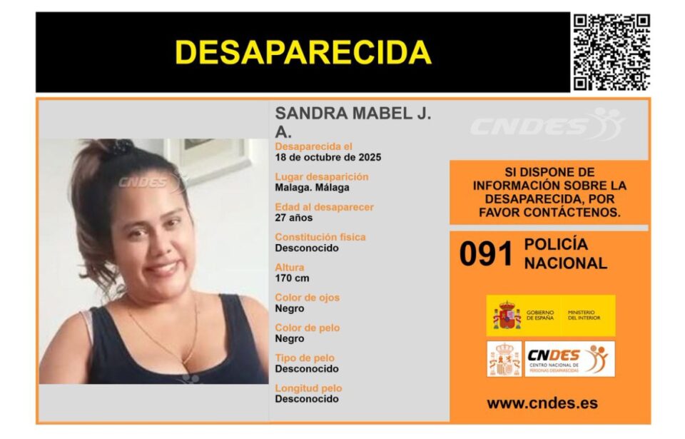 Tercera alerta por desaparición en la provincia de Málaga en apenas tres días. El Centro Nacional de Personas Desaparecidas (CNDES), del Ministerio del Interior, ha enviado una alerta, a través de sus redes sociales, por la búsqueda de una joven de 27 años que fue vista por última vez el pasado 18 de octubre en Málaga.