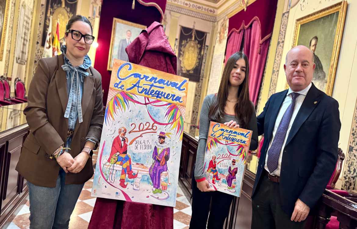 En el marco de esta presentación, se ha dado a conocer también el cartel anunciador del Carnaval 2026, cuya autora es Vivian de Souza, alumna de Bachillerato de la especialidad de Artes del IES Pedro Espinosa, una obra que pone en valor el talento joven local y su vinculación con la cultura antequerana.