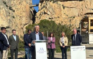 Colocada la primera piedra del nuevo puente colgante del Caminito del Rey, el más grande de España