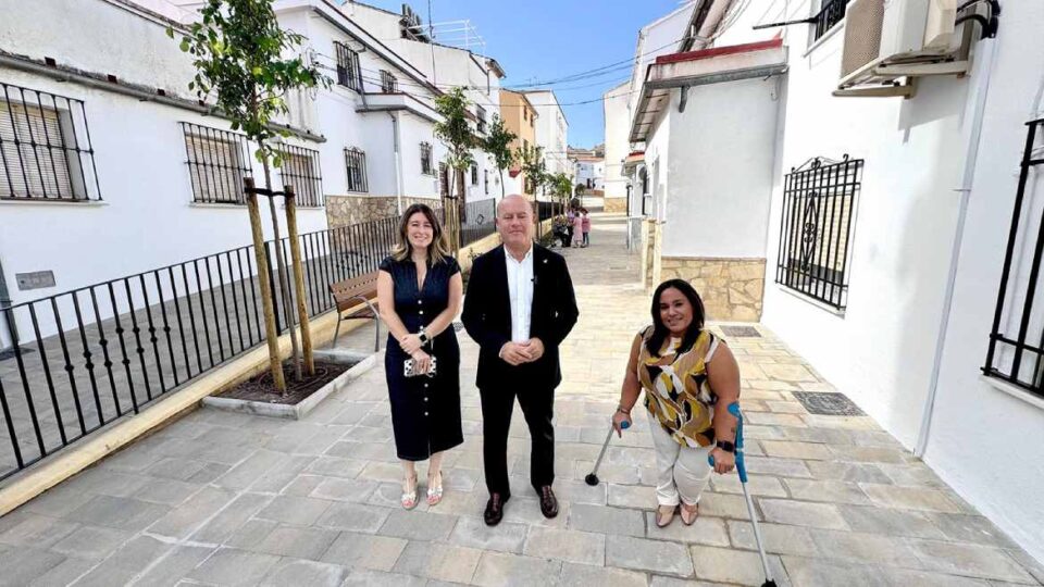 El alcalde de Antequera, Manolo Barón, ha visitado la ya finalizada calle Sagunto del barrio Girón acompañado por la teniente de alcalde delegada de Obras y Mantenimiento, Teresa Molina, y la concejal de Accesibilidad, Sara Ríos, con motivo de la conclusión de las obras de remodelación integral ejecutadas dentro del Plan PFEA.