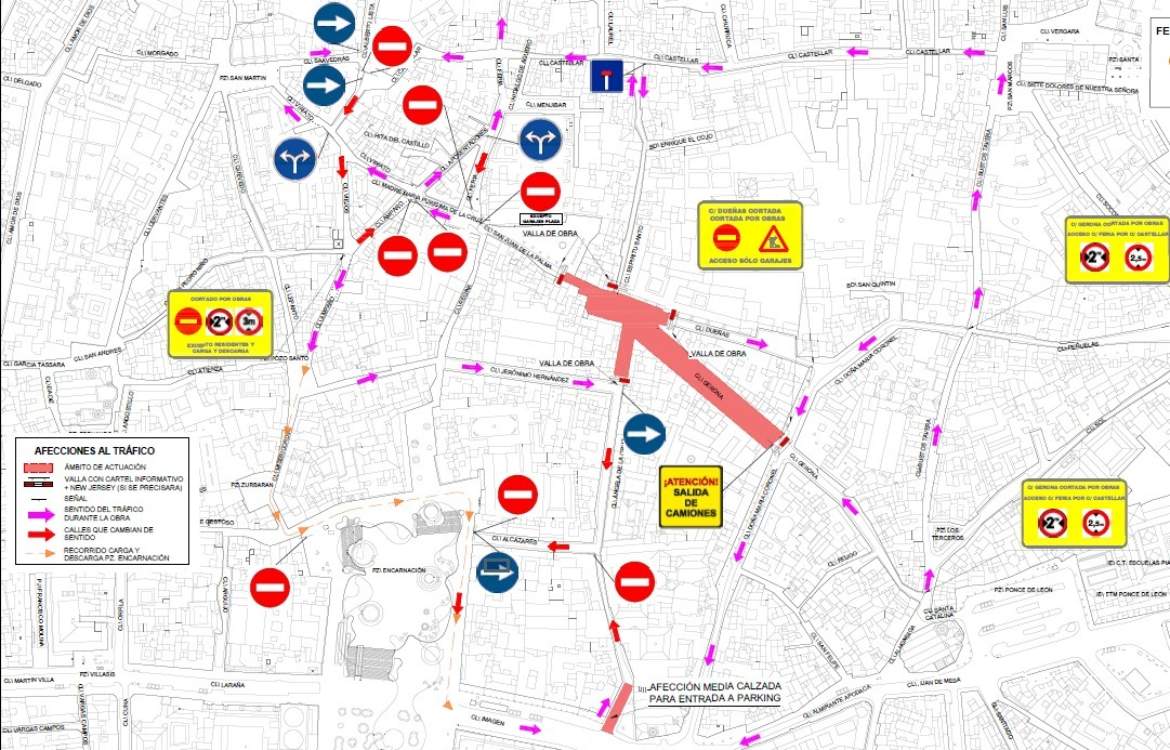 Para compaginar las obras con la circulación de vehículos por todo el entorno, el Ayuntamiento ha dispuesto un plan de tráfico que establece las medidas siguientes: