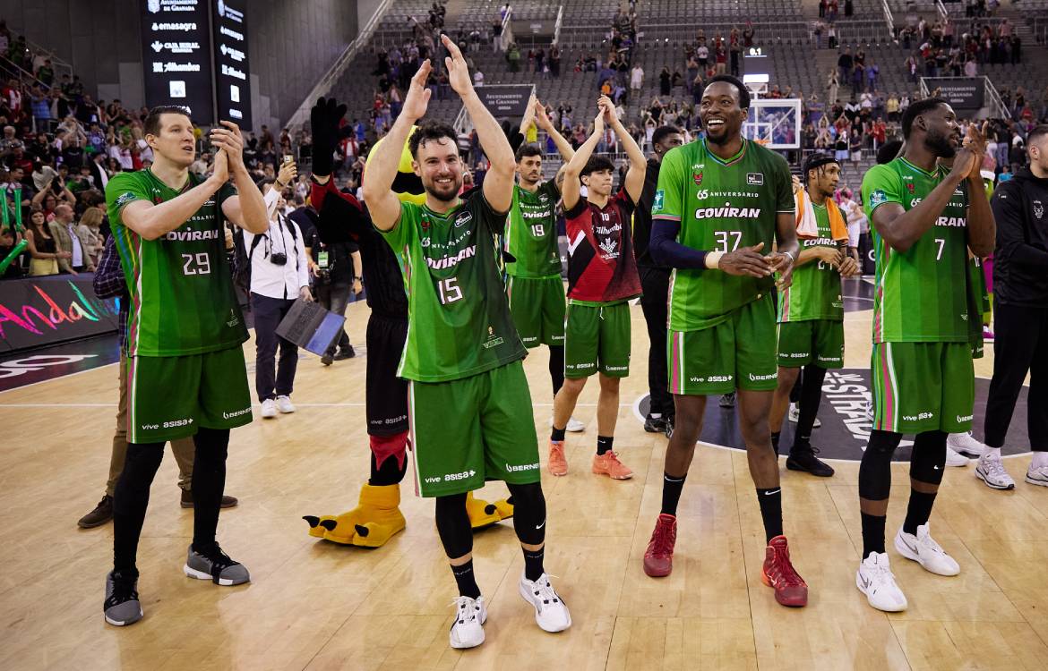 Covirán Granada: Elias Valtonen 7, Lluís Costa 16, Luka Bozic 15, Amida Brimah 7 y Mehdy Ngouama 11 – quinteto titular – Jonathan Rousselle 12, Tunde Olumuyiwa 8, Edu Durán 0, Pere Tomàs 3, Jassel Pérez 2 y William Howard 8.