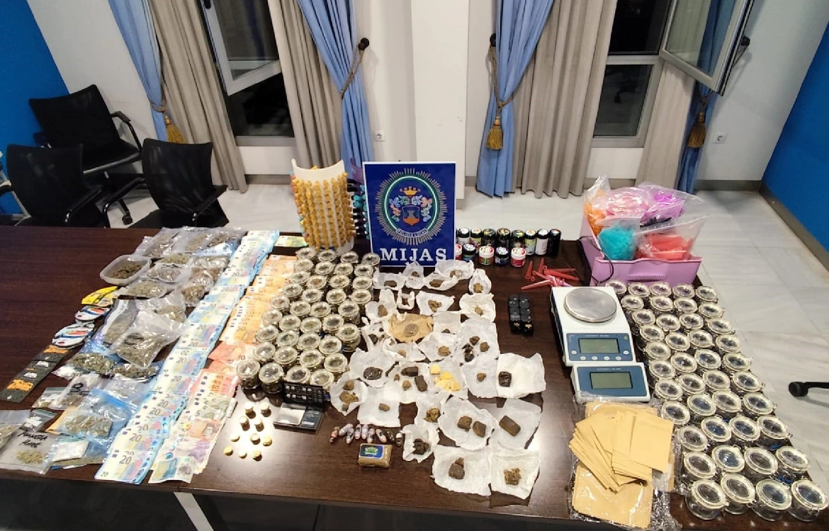 Junto a la droga, los agentes encontraron 79 botes de cristal, 23 botes de plástico, bolsas con depósitos para cigarrillos de marihuana, sobres termosellados y dos balanzas digitales de precisión. Además, se incautaron de 3.469,90 euros en efectivo y 225 libras esterlinas. Todo el material, junto con las sustancias y el dinero, fue trasladado al cuartel de la Guardia Civil de Mijas con la correspondiente cadena de custodia para continuar con las diligencias.
