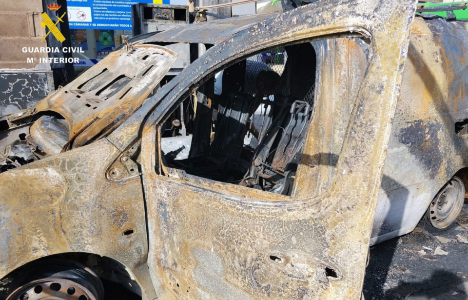 Los investigadores corroboran  la llegada a la gasolinera de una furgoneta con tres varones en su interior y con la parte trasera del vehículo ocupada por aproximadamente 20 garrafas de plástico con una capacidad de 25 litros cada una, normalmente utilizadas para el conocido ‘petaqueo’ relacionado con delitos contra la salud pública.