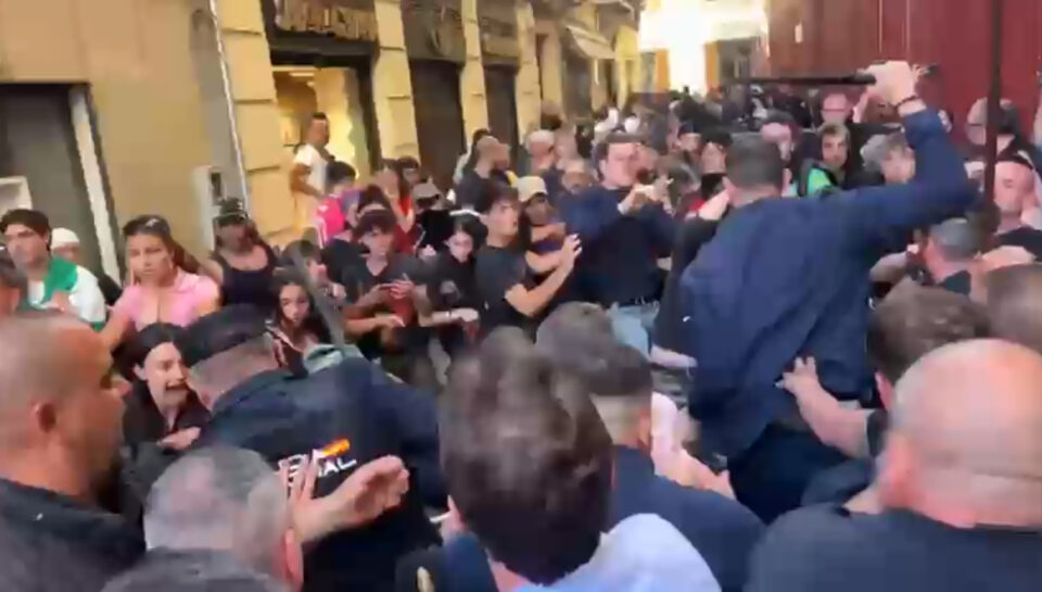 Lejos de calmar las aguas, Abascal declaró que se estaba «cometiendo un delito electoral» -en referencia a la manifestación situada al lado del mitin- y el líder político alertó al jefe del dispositivo policial, que acordonaba la zona, de que si no eran expulsados , iban a dirigirse directamente a la manifestación para que el acto pudiera desarrollarse «en paz y en tranquilidad». Así alentó Abascal a todos los asistentes al mitin a dirigirse en masa hacia la calle del Pie de la Torre, donde ya había algunos enfrentamientos y provocaciones entre los manifestantes antifascistas y simpatizantes del partido, como el agitador Bertrand Ndongo.