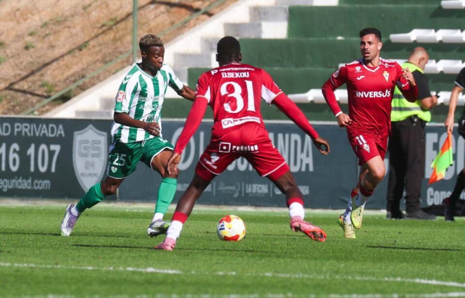 La formación blanquiverde, con el paso de los minutos, fue más dominadora de la posesión del balón y creció en el terreno de juego ante un Real Murcia más impreciso y que solo generó algo de peligro a balón parado. A esa mejoría en el juego solo le faltó la rúbrica de un gol. Bianiany realizó varios centros al área. En uno Nico Njalla tardó en disparar y, luego, Quintana mandó el esférico por encima del travesaño, sin embargo, en otra de las acciones del francés en banda derecha, Luismi Gutiérrez perdonó el 1-0 en un tiro desde el corazón del área a las manos de Gazzaniga. En el fútbol este tipo errores pasan factura y, en el otro lado del campo, el cuadro visitante se puso por delante en el marcador en el minuto 44, justo antes del descanso. Antonio David disparo desde la frontal y el esférico terminó en el en el fondo de las mallas al rozar en Quintana, lo que dificultó la intervención a Samu Pérez en portería.