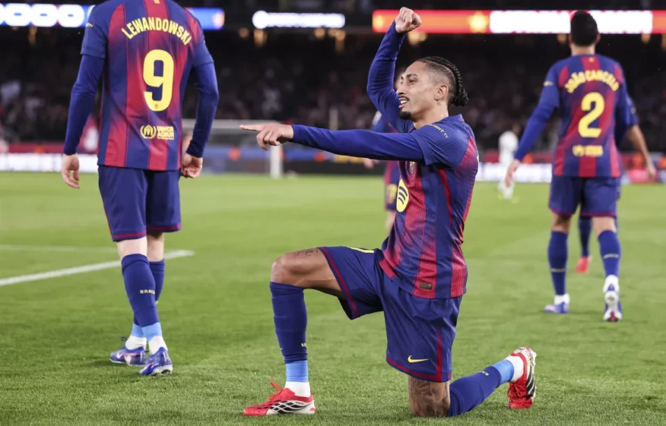 Después de unos primeros 45 minutos de frustración, el Barça desatascó el partido en cinco minutos, primero con un derechazo raso del internacional español y luego con una vaselina de Raphinha (min.52 y 57). La estrella azulgrana, tras una genial genial asistencia con el exterior de Olmo, anotó el tercer tanto con una semichilena que hizo inútil la estirada de Aarón Escandell.