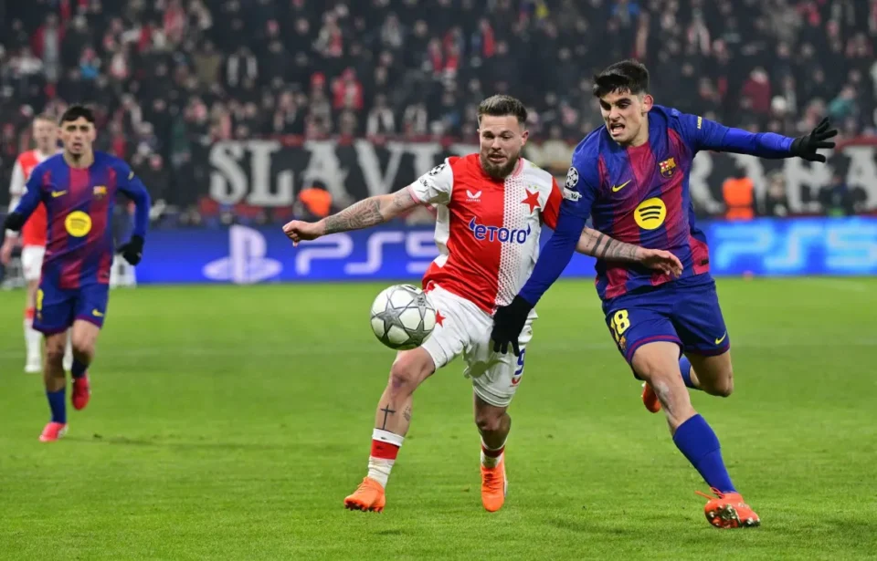 El conjunto checo encontró premio pronto. En el minuto 10, en un córner prolongado en el primer palo por el capitán Tomás Holes, y luego sin saber muy bien cómo, entre Vasil Kusej y Frenkie de Jong, que estaba marcándole por detrás, el balón acabó dentro para un Slavia que no marcaba desde la primera jornada ante el Bodo/Glimt (2-2) y que obligaba al Barça a buscar, como en el primer tramo de la temporada, una nueva remontada.