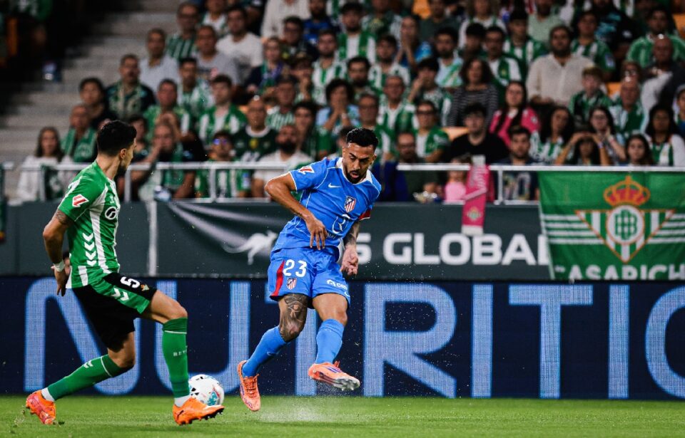 Ya en el tiempo añadido de la primera mitad, tras un centro, Natan cae dentro del área, y mientras los verdiblancos reclamaban un posible penalti, los colchoneros iniciaban una salida rápida que acabaría con el segundo del partido, obra de Álex Baena. Los locales pedían explicaciones tras la acción, aunque el colegiado valenciano mantuvo firme la decisión de dejar seguir y no señalar nada.