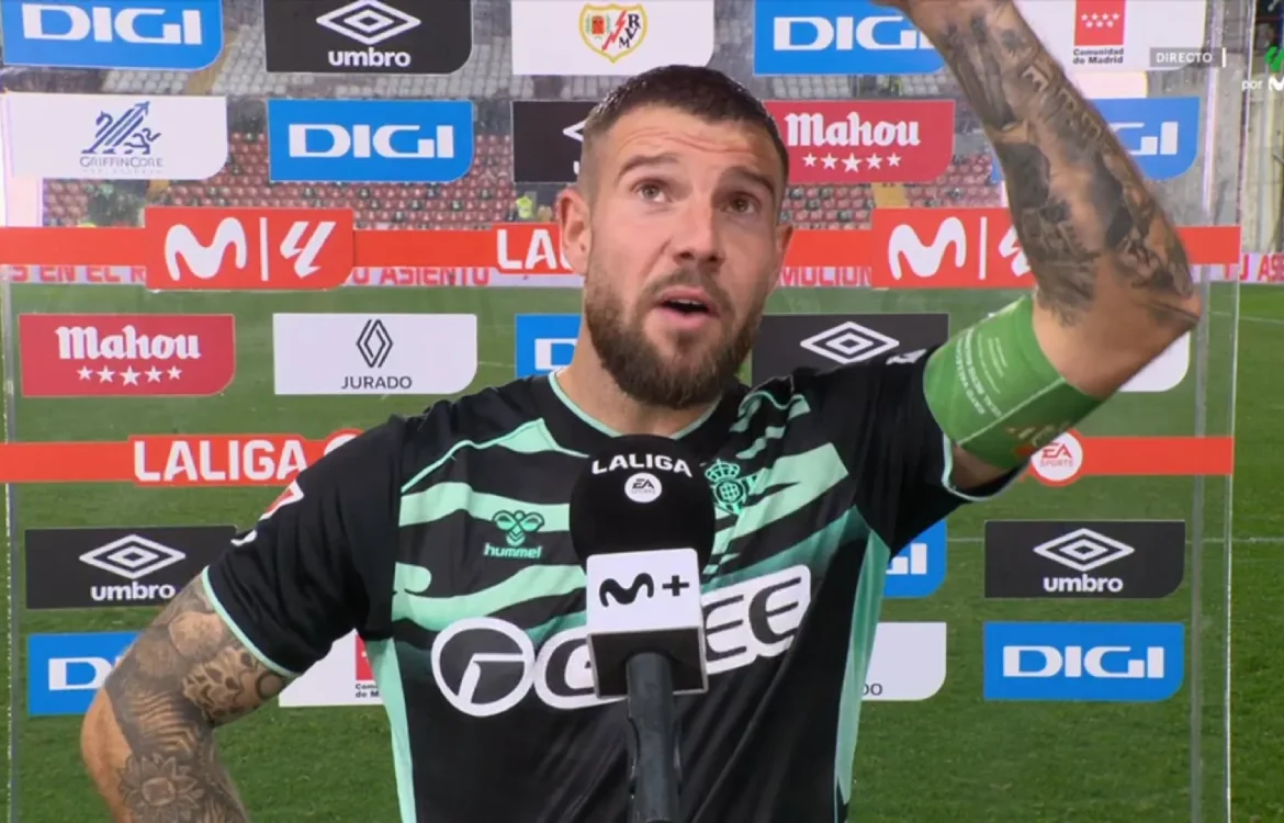 El Real Betis empató a cero en su visita a Vallecas. Los béticos cierran el curso de partidos a domicilio sin perder y se sitúan en sexto lugar de la clasificación. Tras el partido habló el jugador verdiblanco Aitor Ruibal para los micrófonos de Movistar y ahí fue cuando se vivió el lamentable episodio entre el jugador y un aficionado de la grada.