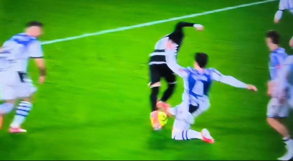 Joaquín Muñoz se plantó en el área a trompicones y cuando se disponía de cara al portero rival, Beitia tocó en su pierna derecha y fue derribado al suelo el extremo . La acción no se revisó en el VAR (Min. 50). El segundo penalti reclamado es para su sustituto; Lobete. El vasco cayó dentro del área tras un contacto de la rodilla de Garro con la rodilla diestra del extremo. La acción no se revisó en el VAR (Min. 88). El tercer penalti, con un contacto algo más ligero pero también existente, es sobre Izan Merino. El centrocampista fue atropellado dentro del área por Carbonell. La acción no fue revisada en el VAR (Min. 95). Tres penaltis reclamados, en todos ellos hubo contacto dentro del área (a priori motivo más que suficiente para que se señale la pena máxima) y ninguno fue revisado.