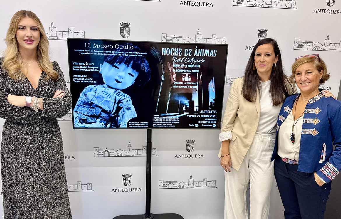 Las tenientes de alcalde Ana Cebrián y Marta González, junto a Matilde de Talavera de Ciudades Medias en Antequera, han presentado estas actividades que año tras año reúnen a decenas de personas atraídas por las historias ocultas, la ambientación escénica y la reinterpretación del patrimonio local desde un enfoque más cercano y atractivo para el público joven.