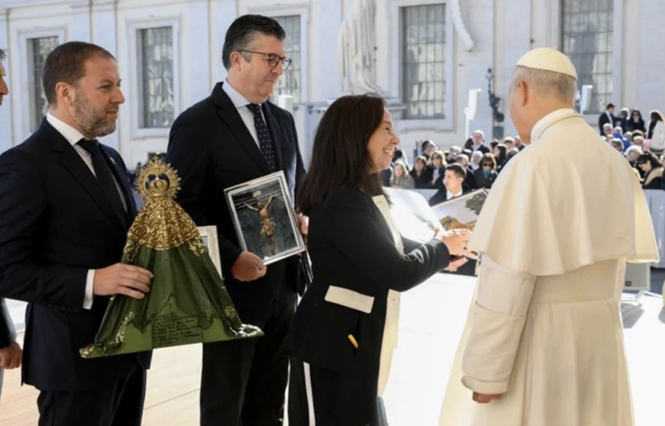 El hermano mayor de la Archicofradía de la Esperanza de Málaga, Sergio Morales, y el de la Cofradía del Cachorro de Sevilla, José Luis Aldea, así como la coordinadora nacional de la Gran Procesión del Jubileo de las Cofradías, Paloma Saborido, han sido recibidos este sábado en Roma por el Papa León XIV.