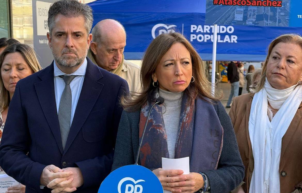 «Los catalanes, gracias a los acuerdos que tiene Pedro Sánchez con los nacionalistas, tendrán un AVE desde Madrid a Barcelona a 350 km/h», expresa la presidenta del PP, quien hace una comparativa con la situación de los malagueños «que van en los atascos a 5 km/h por la A-7».