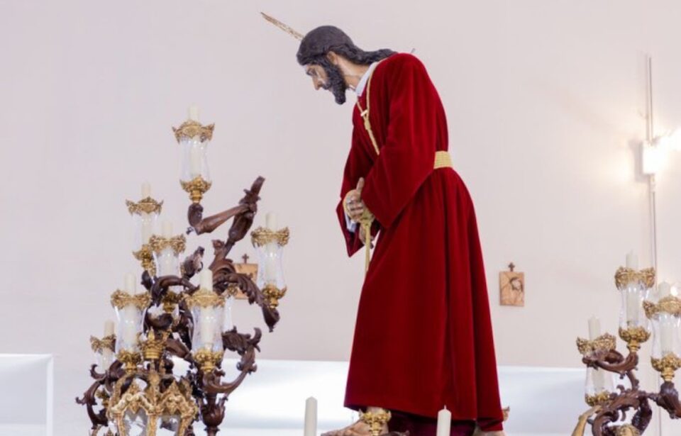 La imagen, obra del escultor José Antonio Navarro Arteaga, se presenta por ahora con las manos atadas sobre las andas procesionales realizadas por Francisco Verdugo, estrenadas en 2019 durante la Semana Santa, en la primera estación de penitencia del Señor de la Humildad del Cerro.