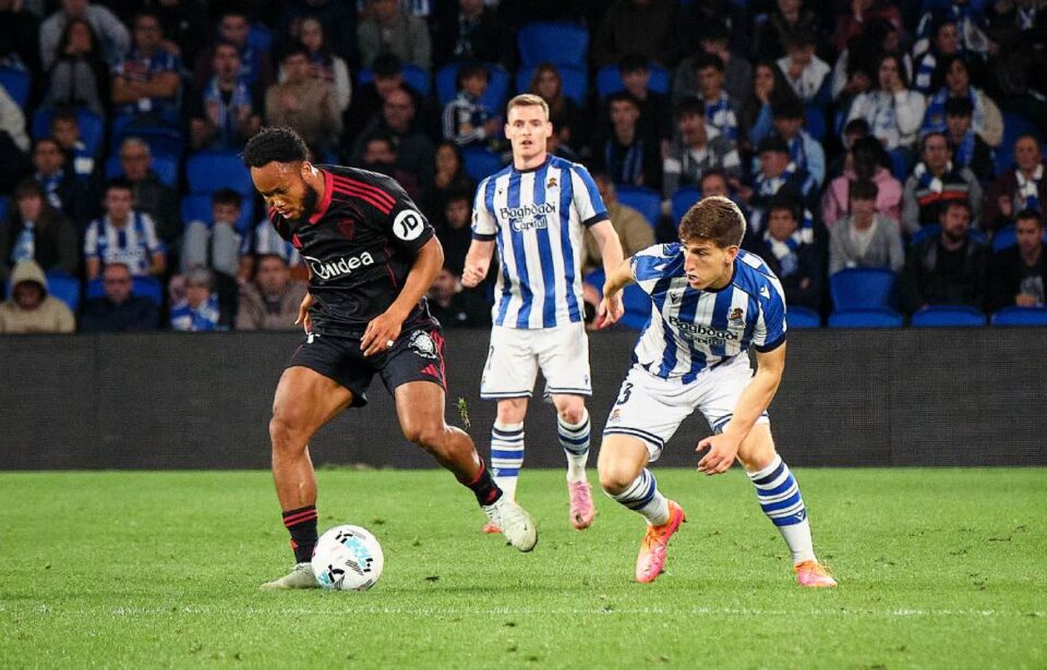 Llegó la jugada tonta de la semana. Saque de banda a favor del Sevilla en la posición de lateral derecho. Carmona se la regala a Brais y este asiste, sin querer, de rebote en Agoumé, a Oyarzábal para hacer el segundo en su cuenta y para su equipo. Las limitaciones del Sevilla salían a relucir. Un equipo que va mejor para arriba que para atrás.