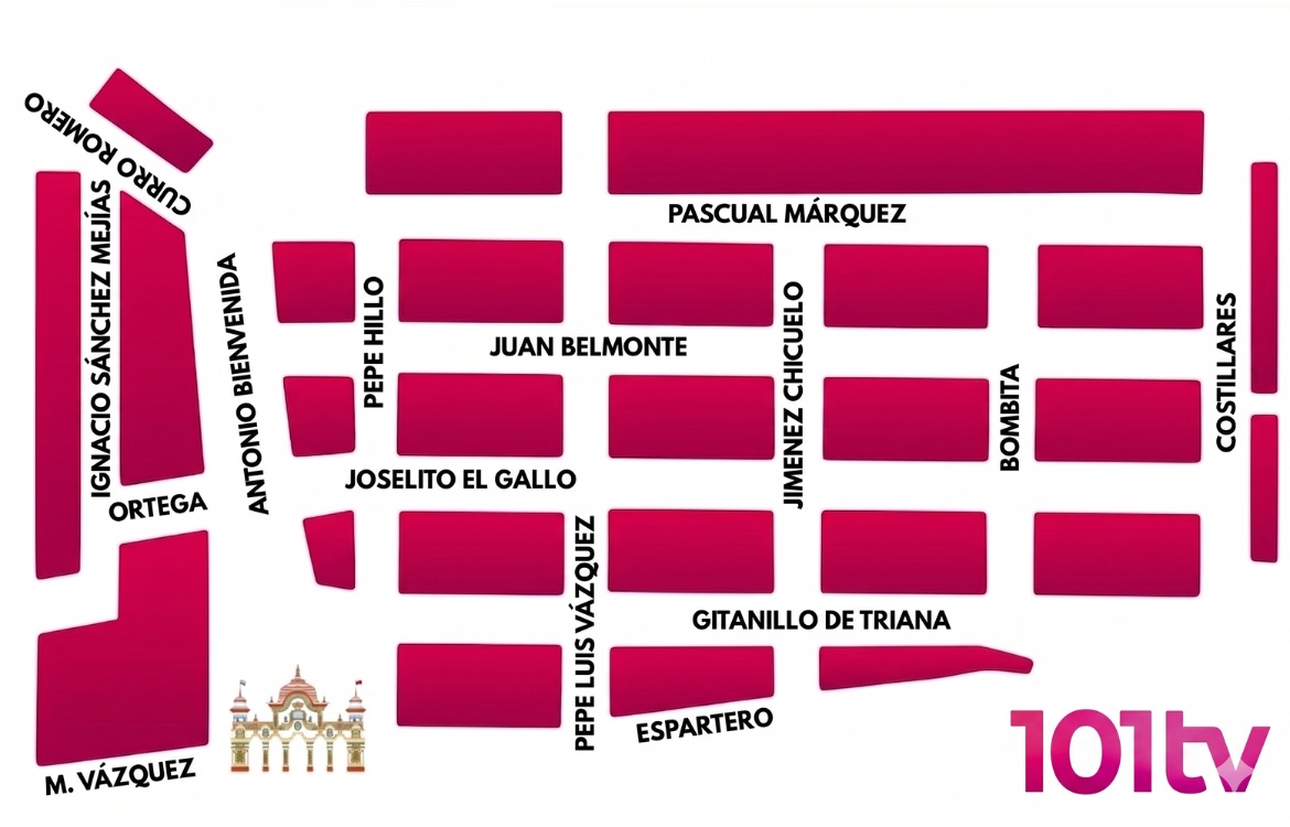 A lo largo de esos días, Sevilla experimentará una transformación total para acoger una de sus citas más emblemáticas. El epicentro será el Real de la Feria, situado en esta zona de la ciudad, que volverá a reunir más de un millar de casetas distribuidas en quince calles, siguiendo el plano oficial previsto para 2026.