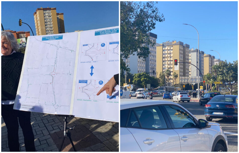 Mejorar la seguridad vial y la fluidez en torno a la plaza Manuel Azaña y alrededores es una de las propuestas del Ayuntamiento de Málaga. En este sentido, las concejalas de Movilidad y del distrito Cruz del Humilladero, Trinidad Hernández y Teresa Porras, han presentado un plan de reordenación de tráfico con algunas novedades, se trata de una prueba piloto «que no tiene fecha de inicio todavía», y que busca mejorar la seguridad de los peatones al cruzar, que tienen que hacerlo en ámbar, y trasladar la parada de autobús a otro emplazamiento para evitar tráfico y situaciones de riesgo.