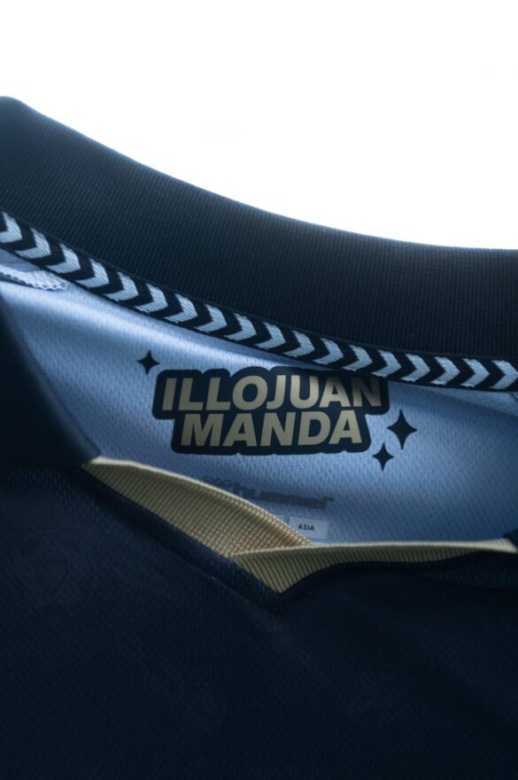IlloJuan deja su impresa en la camiseta con varios guiños. En la parte inferior de la camiseta aparece su nombre y en el cuello, por dentro, pone ILLOJUAN MANDA. Además, en el cuerpo de la camiseta hay dibujos minimalistas, como el logo del streamer, un micrófono, un balón o una pala. Por último, tras el cuello una pera. Esta fruta hace referencia a una palabra tan ‘malaguita’ como es perita.