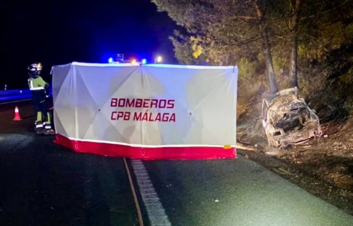 Los bomberos del CPB de Antequera extinguieron las llamas del vehículo, que quedó completamente calcinado. Tras recibir la autorización correspondiente, procedieron a excarcelar el cuerpo sin vida para ponerlo a disposición de los servicios funerarios.