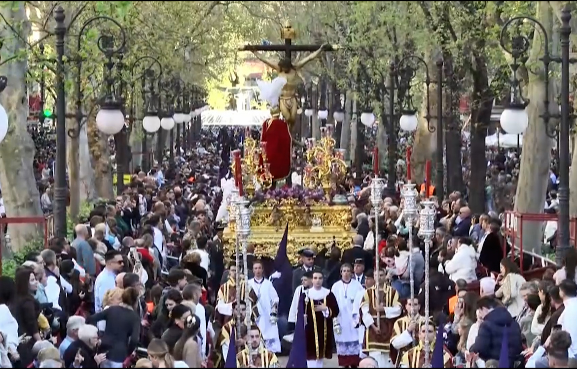 La expectación era máxima en torno a la Iglesia de Nuestra Señora de los Dolores a primera hora de la tarde, desde donde partió el paso del Cristo en su Sagrada Lanzada, que desde 2023 no había podido procesionar por las calles de Granada. Torrente de emociones por las calles del Zaidín con el paso de la Lanzada, al que siguió María Santísima de la Caridad, con un homenaje previo en la primera levantá a Paco Carrasco, su ‘eterno capataz’.