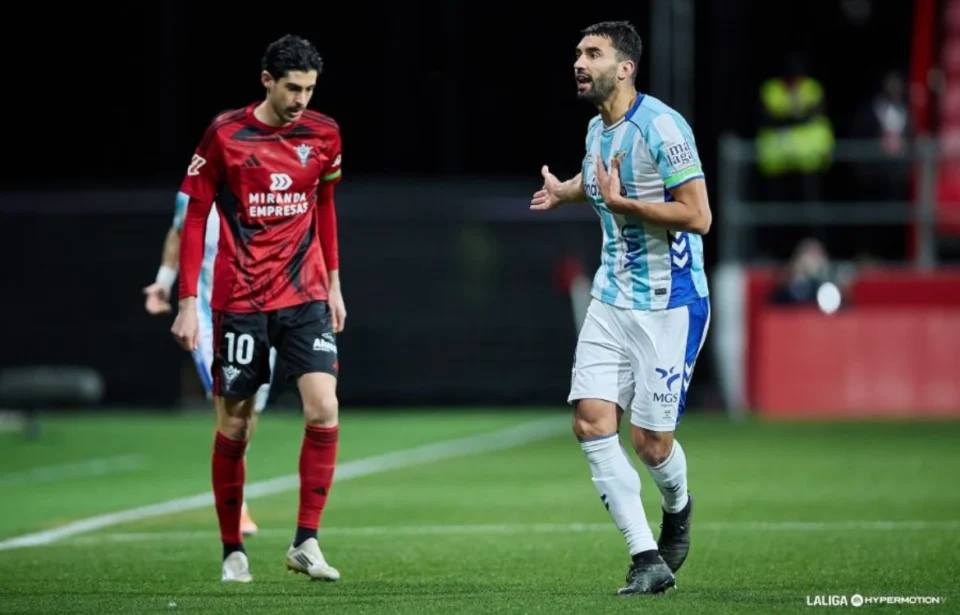 Indignación en el malaguismo con el penalti pitado ante el Mirandés por un agarrón inexistente