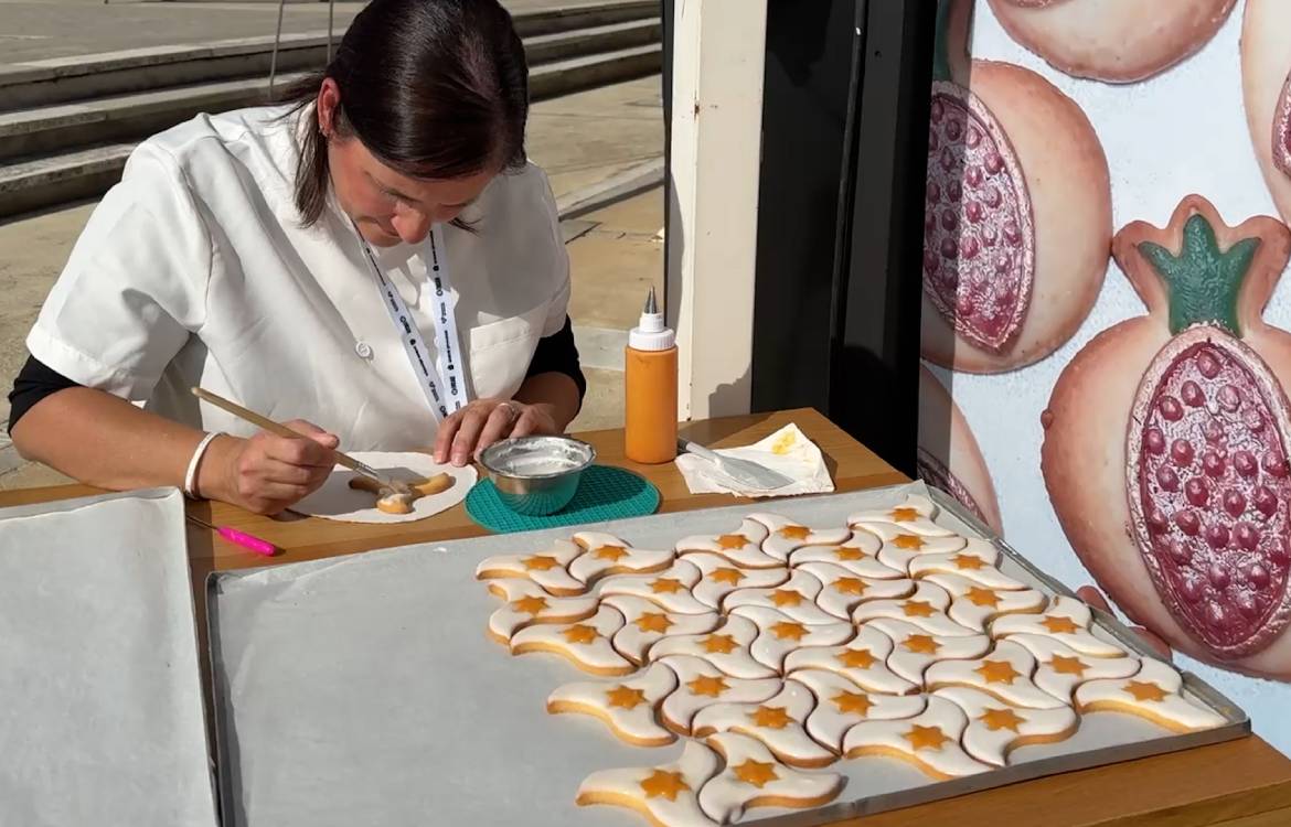 Margarita y Valle han llevado sus galletas artesanales inspiradas en la Alhambra que realizan en su obrador Flor de Vainilla de La Zubia al Congreso Internacional de Gastronomía Enclave Granada, donde han acaparado muchas miradas. Las galletas reproducen elementos arquitectónicos singulares de la Alhambra y junto a su stand, la propia Valle se ha encargado de decorarlas para que todos los asistentes pudieran apreciarlo ‘in situ’.