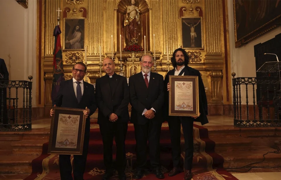La Agrupación entrega los nombramientos al pregonero y al autor del cartel de la próxima Semana Santa de Málaga
