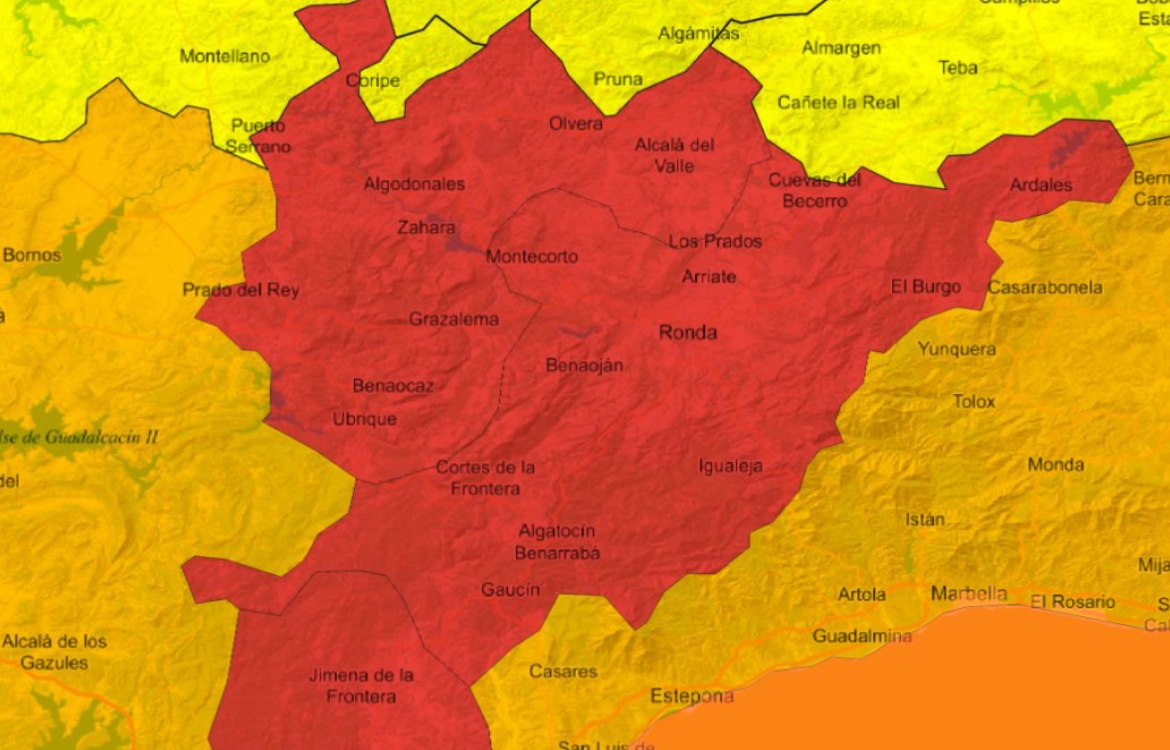 Ya es oficial. Aunque era un secreto a voces, la Aemet ha decidido activar la alerta roja por precipitaciones en toda la comarca de Ronda para este próximo miércoles, 3 de febrero. Tal y como informan desde la propia agencia, se pueden acumular más de 150 mm en doce horas y más de 200 en 24 horas.