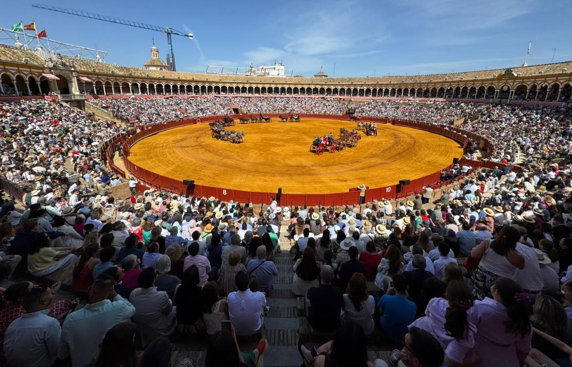 Sevilla vivió este domingo 19 de abril una de sus citas más emblemáticas en la víspera del tradicional Lunes del Pescaíto, con la celebración de la 40ª Exhibición de Enganches en la Plaza de Toros de la Real Maestranza de Caballería. El evento, que comenzó a las 12.00 horas, reunió a decenas de carruajes históricos y participantes procedentes de distintos puntos, consolidándose como uno de los actos más esperados dentro de la programación previa a la Feria de Abril.