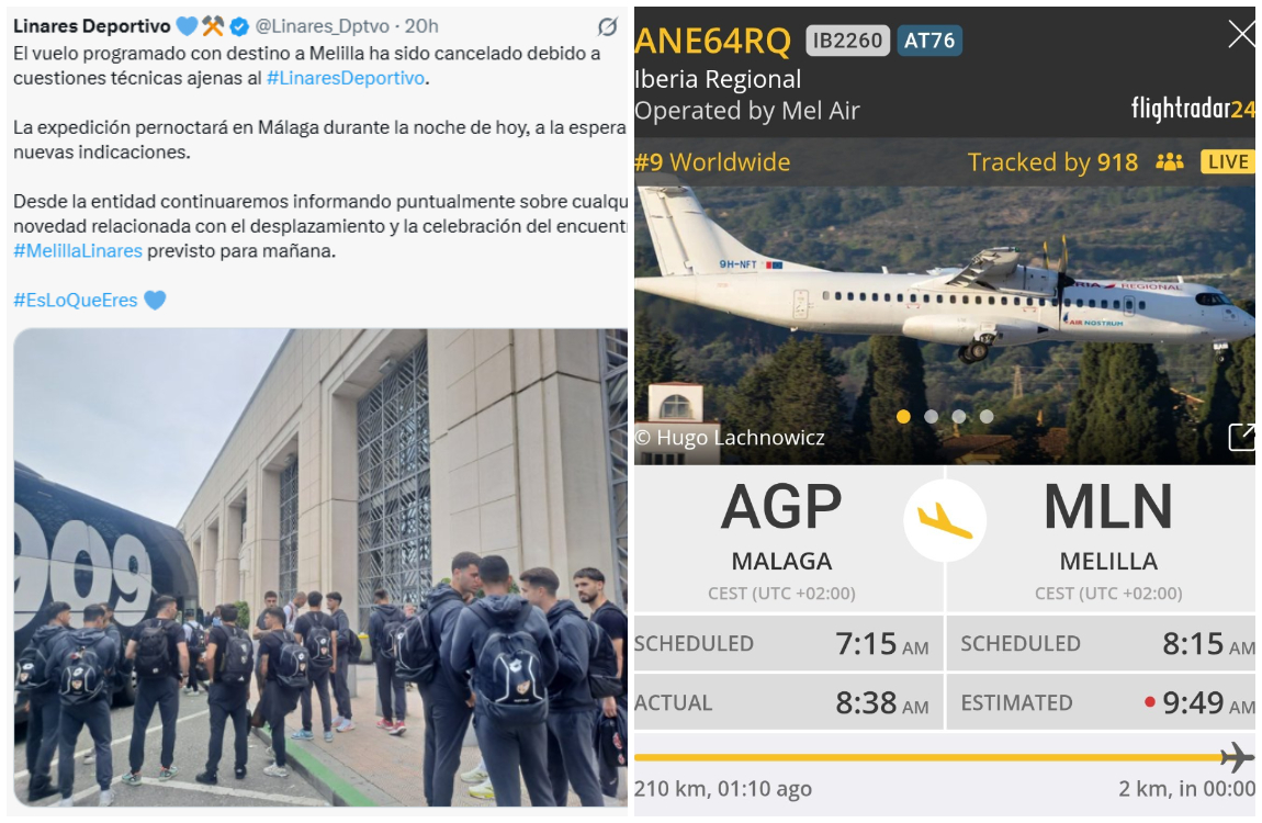 El equipo jienense publicaba este comunicado en sus redes sociales: «El vuelo programado con destino a Melilla ha sido cancelado debido a cuestiones técnicas ajenas al Linares Deportivo. La expedición pernoctará en Málaga durante la noche de hoy, a la espera de nuevas indicaciones. Desde la entidad continuaremos informando puntualmente sobre cualquier novedad relacionada con el desplazamiento y la celebración del encuentro Melilla-Linares previsto para mañana».