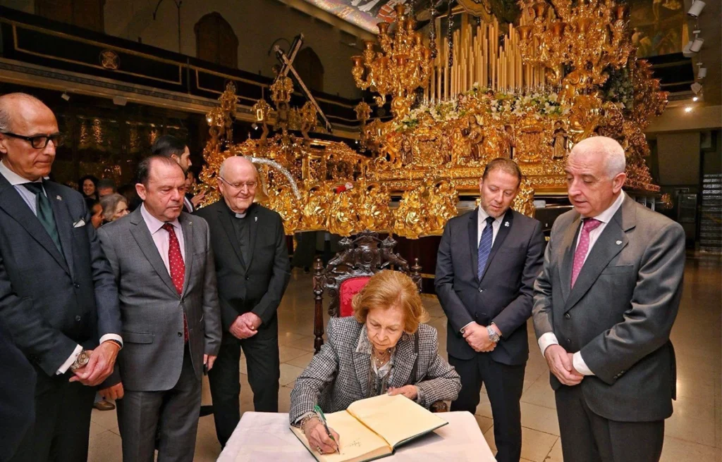 «La devoción y cercanía de Su Majestad la Reina Doña Sofía quedó especialmente patente el Miércoles Santo de 2024, cuando visitó nuestra casa hermandad, y conoció de cerca el patrimonio de la corporación y veneró a la Virgen en su trono de salida procesional», aseguran desde la corporación perchelera.