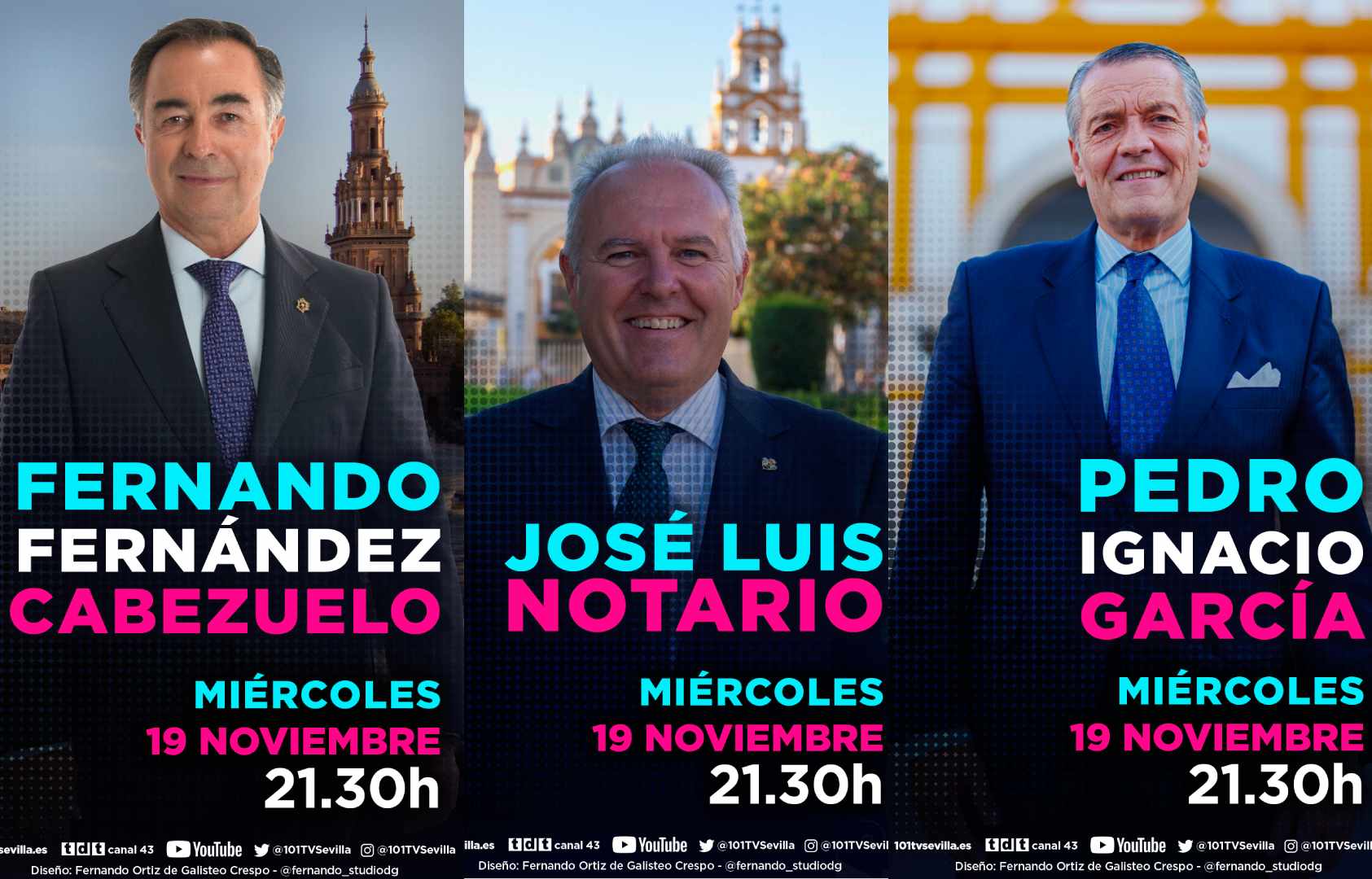 Por ello, el programa cofrade de 101TV Sevilla entrevistará a los tres candidatos que se presentan a los comicios macarenos. De esta forma, Curro Bono mantendrá charlas por separado con José Luis Notario, Pedro Ignacio García y Fernando Fernández Cabezuelo, en este mismo orden de emisión. Cada conversación durará cincuenta minutos, aproximadamente.