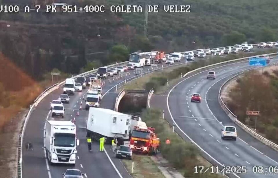 Nueva jornada de atascos en la A-7. A las 4.20 de la madrugada avisaron a las autoridades de que un camión estaba varado en la vía. Sin embargo, los conductores han amanecido con retenciones desde la Axarquía hasta la capital. El siniestro se produjo en el punto kilométrico 951 de la A-7, sentido Málaga, a la altura de Caleta de Vélez. Fuentes de la DGT informan de que accidente mantiene el carril izquierdo cerrado.
