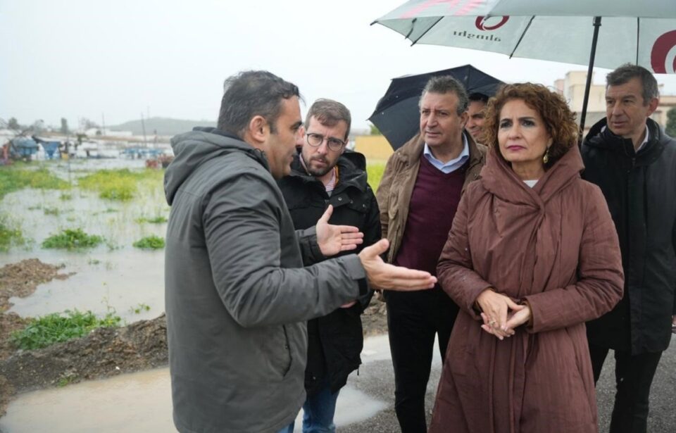La vicepresidenta primera del Gobierno, María Jesús Montero, se ha desplazado este sábado, 7 de febrero, al municipio sevillano de El Palmar de Troya, uno de los puntos más afectados por las últimas borrascas, para supervisar el despliegue de casi un millar de efectivos de las Fuerzas y Cuerpos de Seguridad del Estado desplegados en la provincia de Sevilla debido a la crecida de los ríos.