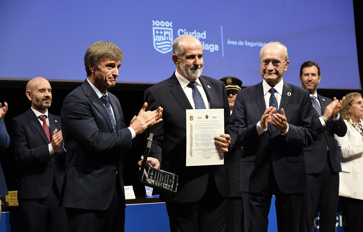 En la ceremonia de entrega de diferentes distinciones y reconocimientos a miembros del cuerpo y a entidades colaboradoras, celebrada en el Palacio de Ferias y Congresos de Málaga, el presidente de la Agrupación, José Carlos Garín, agradeció a la Policía Local de Málaga esta mención, tras recoger la felicitación y la placa de manos del intendente principal jefe, Juan Ferrer.