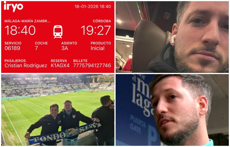 Cristian Rodríguez decidió el pasado domingo embarcarse, por primera vez, en un viaje ferroviario para ver a su Málaga CF ante el Córdoba en el Arcángel. En principio iba a ir en coche junto a su amigo jiennense, pero finalmente tuvo que optar por buscar otra opción. No fue otra que la de coger un Iryo desde la Estación María Zambrano a las 18.40 horas (en el coche 7), con llegada a la ciudad de la Mezquita a las 19.27, hora y media antes del inicio del derbi. Lo que no imaginaba era lo que iba a ocurrir siete minutos más tarde de bajarse en la estación. El convoy, junto al Alvia, fueron tristes protagonistas de uno de los accidentes más trágicos de la historia en España. Tres días después del suceso, el malaguista atiende a los micrófonos de 101TV en La Rosaleda, asegurando que aún sigue asimilándolo.