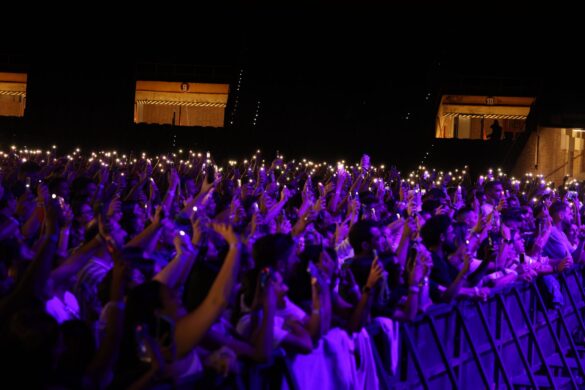 Pero si hubo un momento mágico, ese fue ‘Avi’, la canción que el artista dedica a su hijo. La plaza se transformó en un mar de luces cuando miles de linternas y móviles se encendieron al unísono, creando una atmósfera única. Fue, sin duda, el instante más emotivo de la velada, un paréntesis luminoso que quedará en la memoria de todos los presentes.