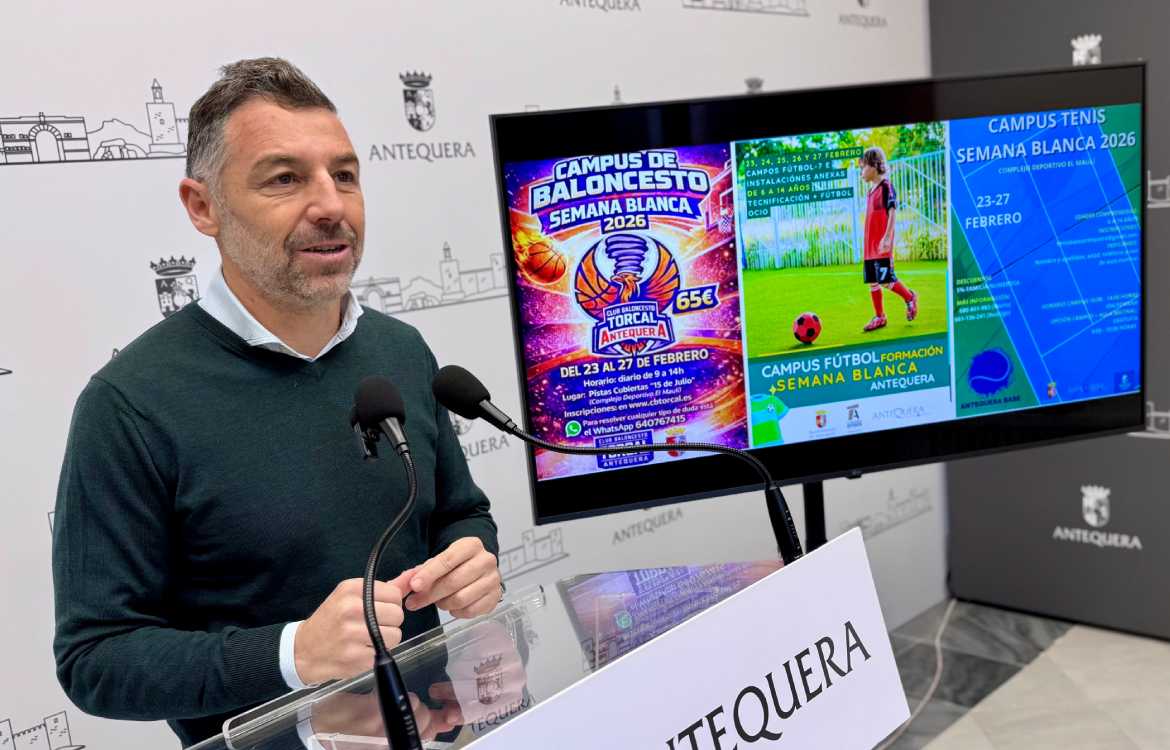 La mejor opción para invertir el tiempo libre es hacer deporte y establecer un hábito de vida saludable. Este es el objetivo prioritario del Ayuntamiento de Antequera y, para cumplirlo, siempre está atento para ofrecer campus de distintas modalidades durante las épocas vacacionales sin actividad lectiva. Ahora llega la Semana Blanca, del 23 al 27 de febrero, y se brinda la opción de poder elegir entre baloncesto, fútbol o tenis en horario matinal, de 9:00 a 14:00 horas, en instalaciones municipales.