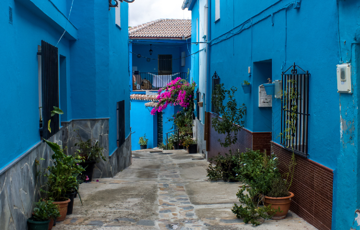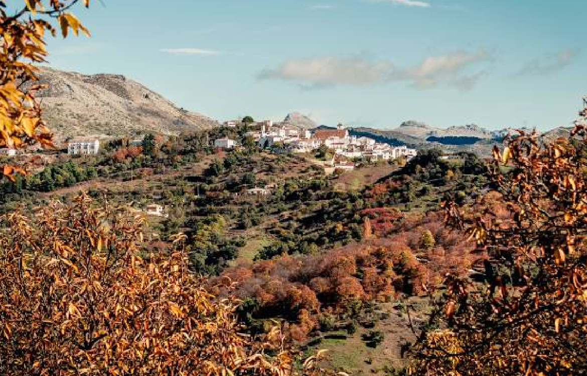 Júzcar, con 227 vecinos, ganó fama internacional al ser pintado de azul para promocionar una película, pero más allá de su anécdota, es un enclave único del Valle del Genal. Rodeado de castañares, es perfecto para el senderismo, especialmente en otoño, cuando los bosques se tiñen de tonos dorados. Su gastronomía serrana, basada en productos locales, y su ambiente tranquilo lo convierten en un destino rural muy atractivo.