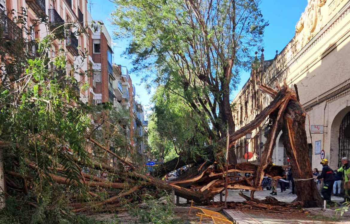 Un árbol de gran porte cae en Sevilla en la calle San Jacinto sin causar daños personales