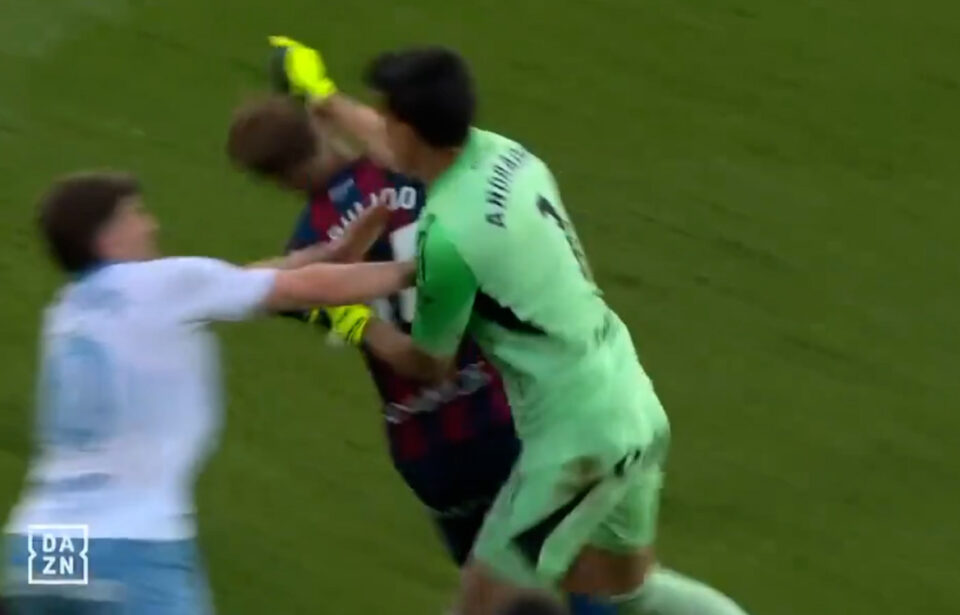 Andrada perdió los papeles por completo al entender que Pulido fingió para forzar una segunda amarilla y tras ser expulsado se fue hacia él para golpearle duramente. Todo ocurrió en el minuto 95. El árbitro, Arcediano Monescillo, se disponía a revisar en el VAR una posible expulsión de Tasende por una acción sobre Luna cuando Andrada abandonó su portería para protestar en el centro del campo.