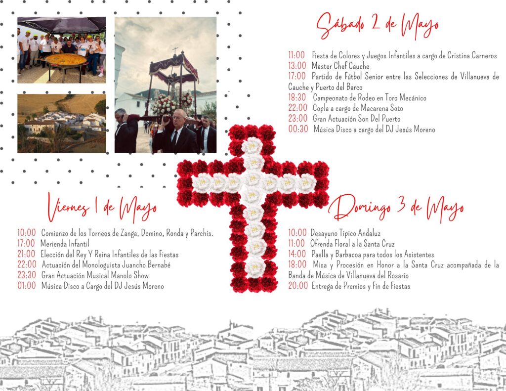 La pedanía antequerana de Villanueva de Cauche celebrará del 1 al 3 de mayo sus tradicionales fiestas en honor a la Santa Cruz con un amplio programa de actividades pensado para todos los públicos, combinando propuestas lúdicas, culturales y religiosas.