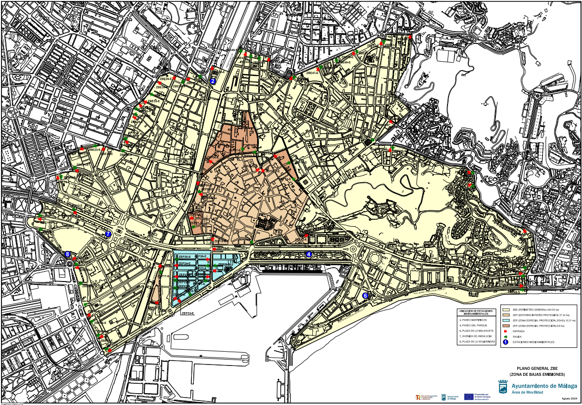 La Zona de Bajas Emisiones de Málaga comprende un espacio de 404,03 hectáreas de circulación limitada. Ocupará el paseo marítimo Antonio Machado, la avenida Ingeniero José María Garnica, la Explanada de la Estación, la plaza de la Solidaridad, la avenida de las Américas, la avenida de la Aurora, los Jardines Picasso, la avenida de Andalucía, la calle Compositor Lehmberg Ruiz, la calle Hilera, la calle Santa Elena, la calle Honduras, la calle Arango, la calle Martínez Maldonado, la avenida Barcelona, la plaza del Hospital Civil, la avenida Doctor Gálvez Ginachero, la calle Mazarredo, la avenida del Arroyo de los Ángeles, el Paseo de Martiricos, la calle Huerto de los Claveles, la calle Marqués de Cádiz, la calle Juan del Encina, la calle Empecinado, la plaza Capuchinos, la Alameda de Capuchinos, la plaza Olletas, la calle Toquero, la calle Obispo González García, la calle Amargura, la calle Ferrándiz, el Paseo Salvador Rueda, la calle Rafael Pérez Estrada y el paseo marítimo Pablo Ruiz Picasso.